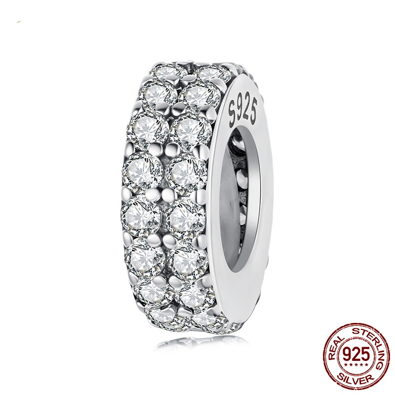 Double-layer Zircon Bracelet Spacer Beads S925 Sterling Silver Beads
