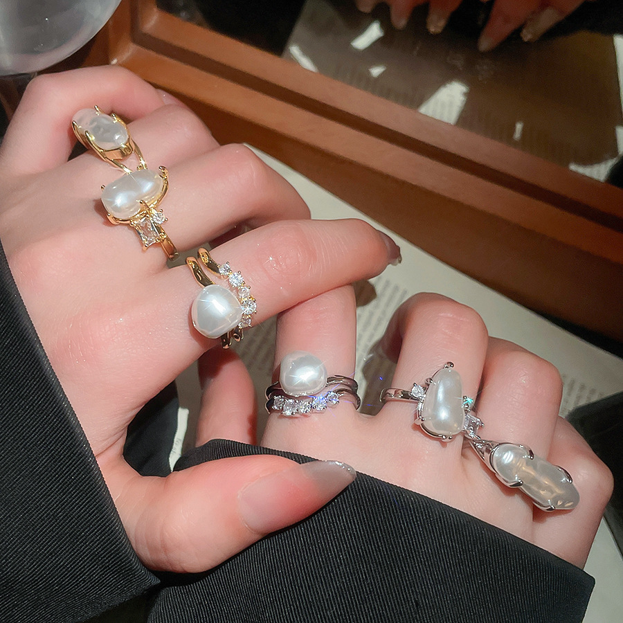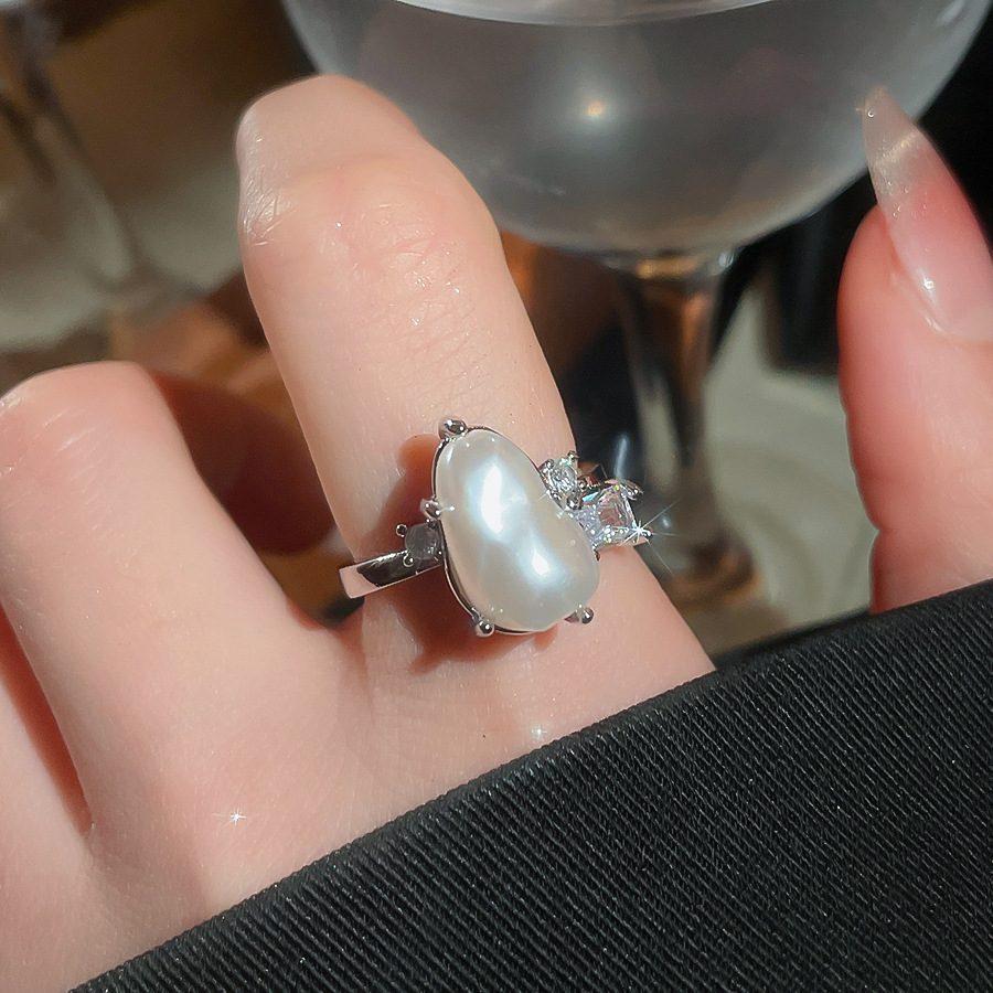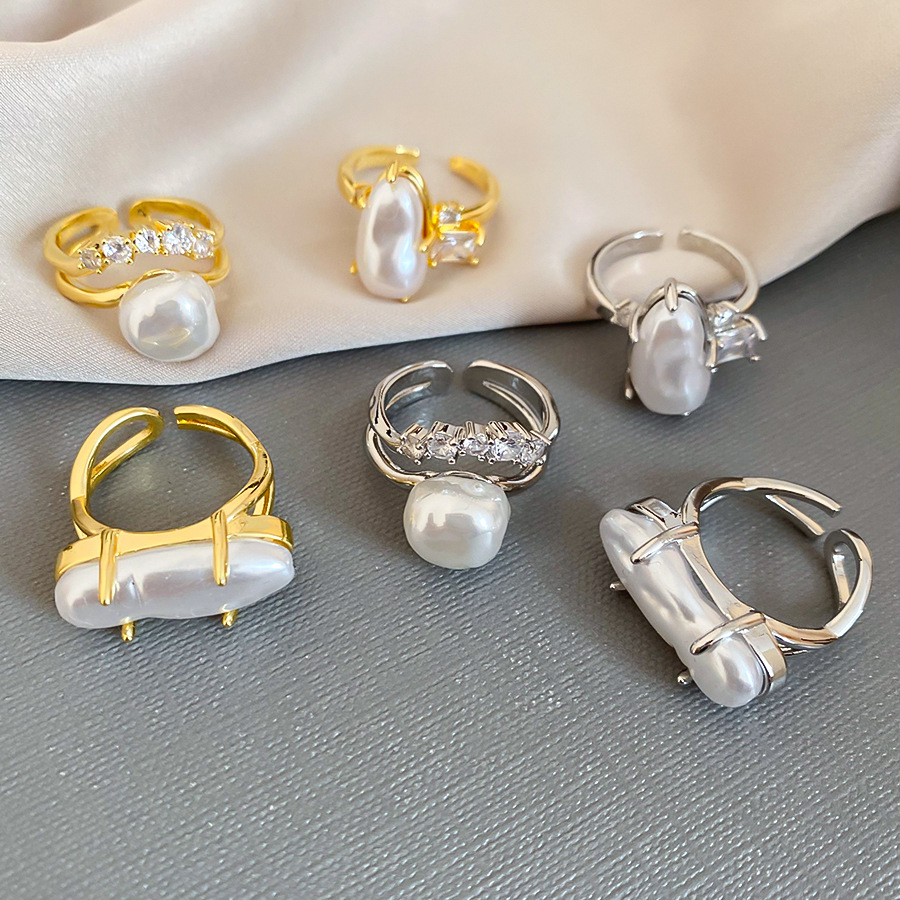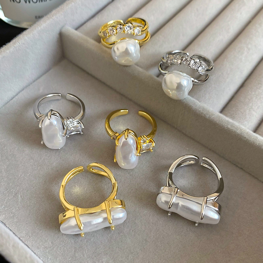 Open Ring With Irregular Pearls