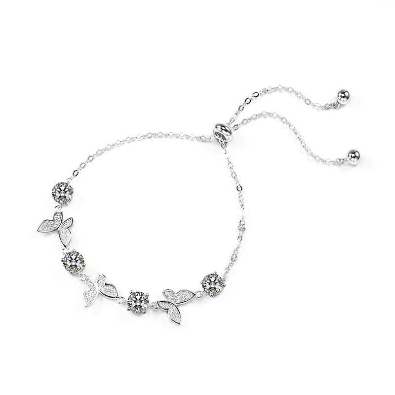 Color: Platinum 50-point white moissanite bracelet MZ-0064B (featuring 4 main moissanite stones) (includes certificate + gift box), Platinum 50-point multicolor moissanite bracelet MZ-0064B (featuring 4 main moissanite stones) (includes certificate + gift box)