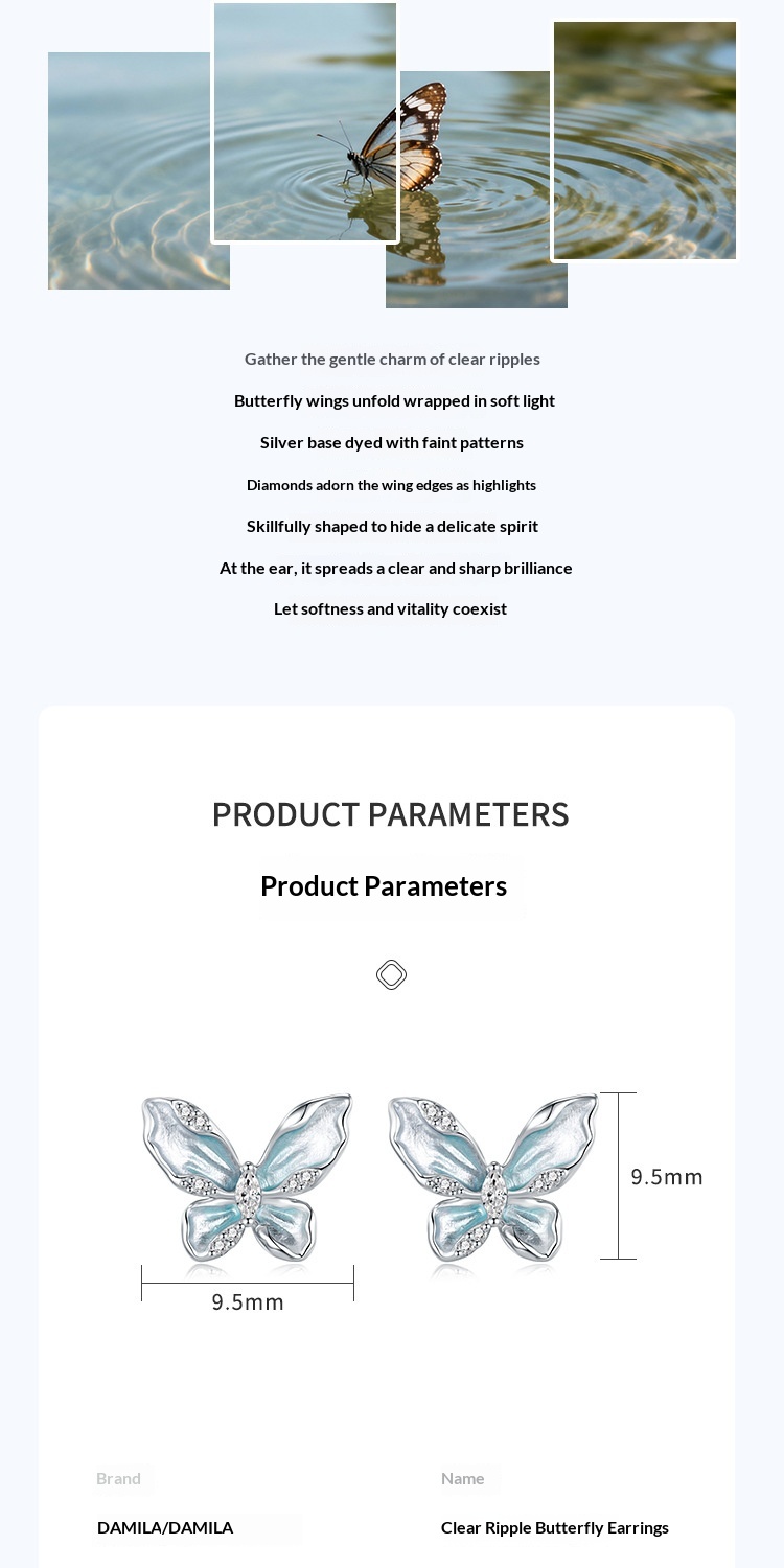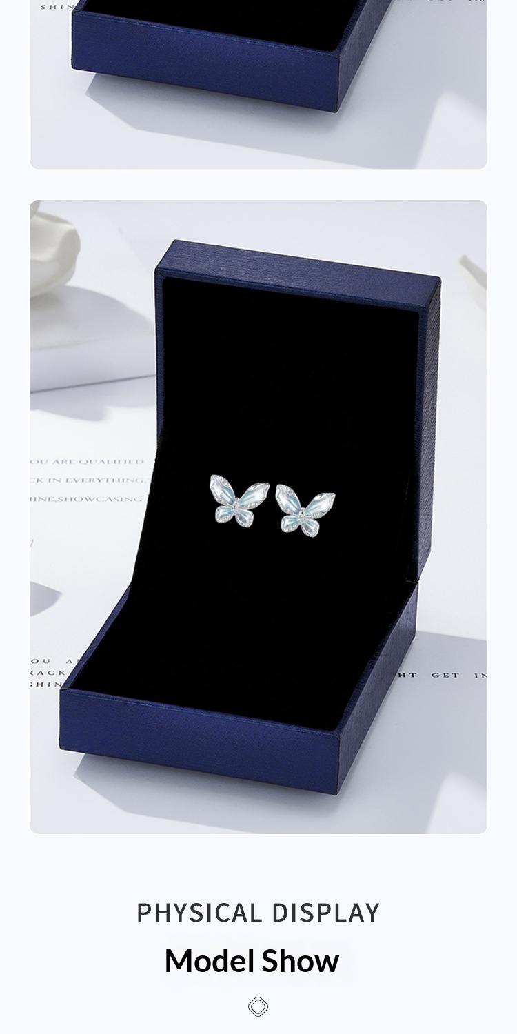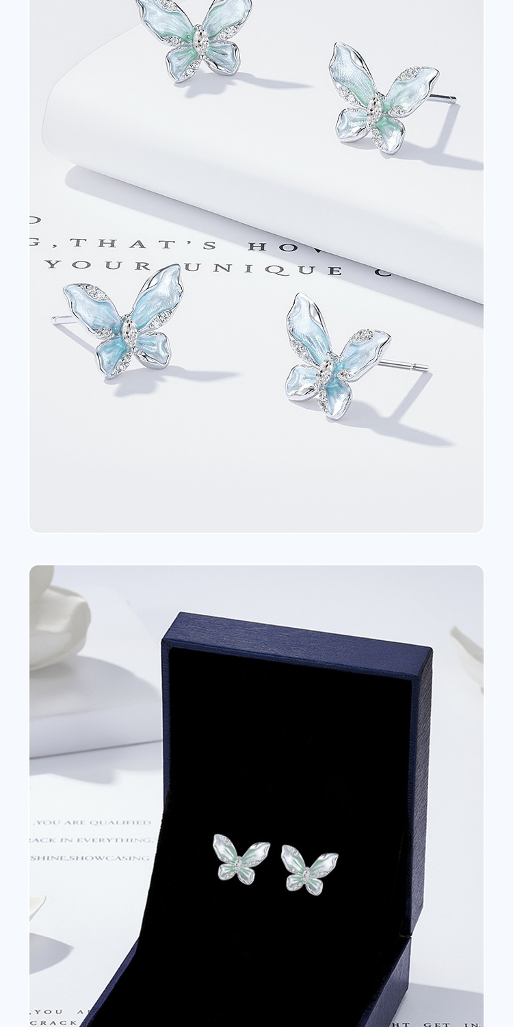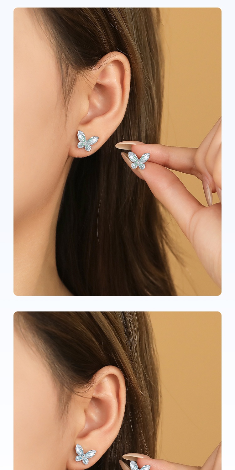S925 Sterling Silver Blue Butterfly Stud Earrings