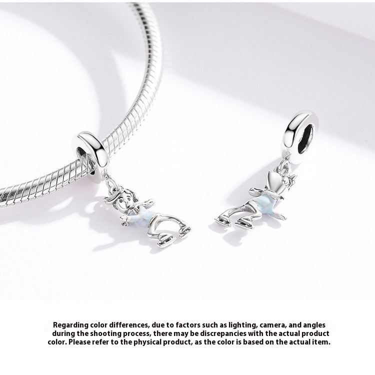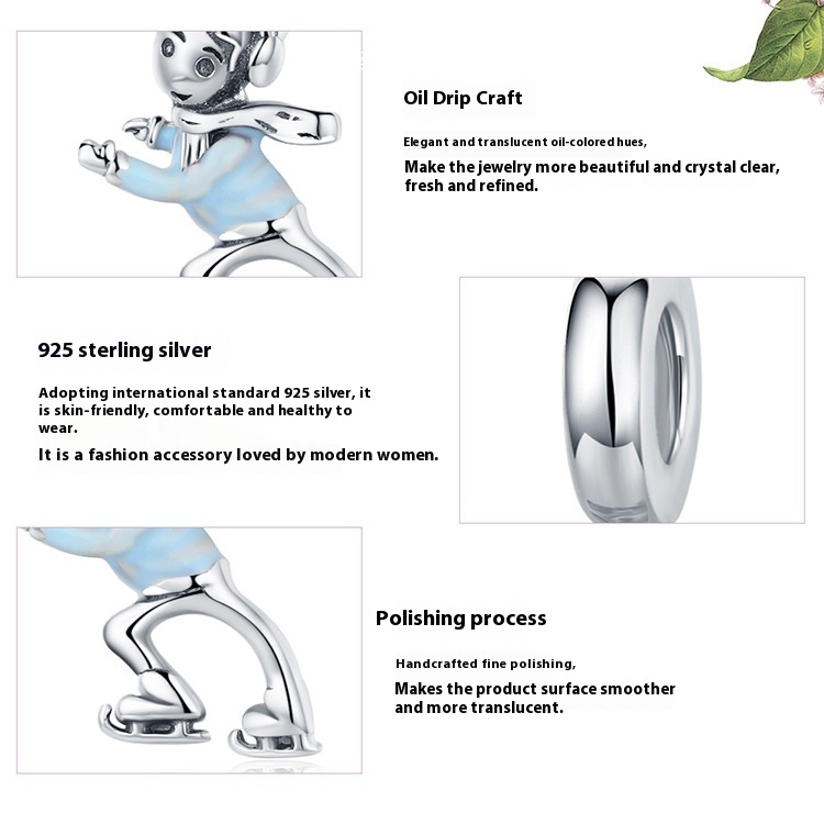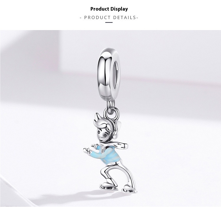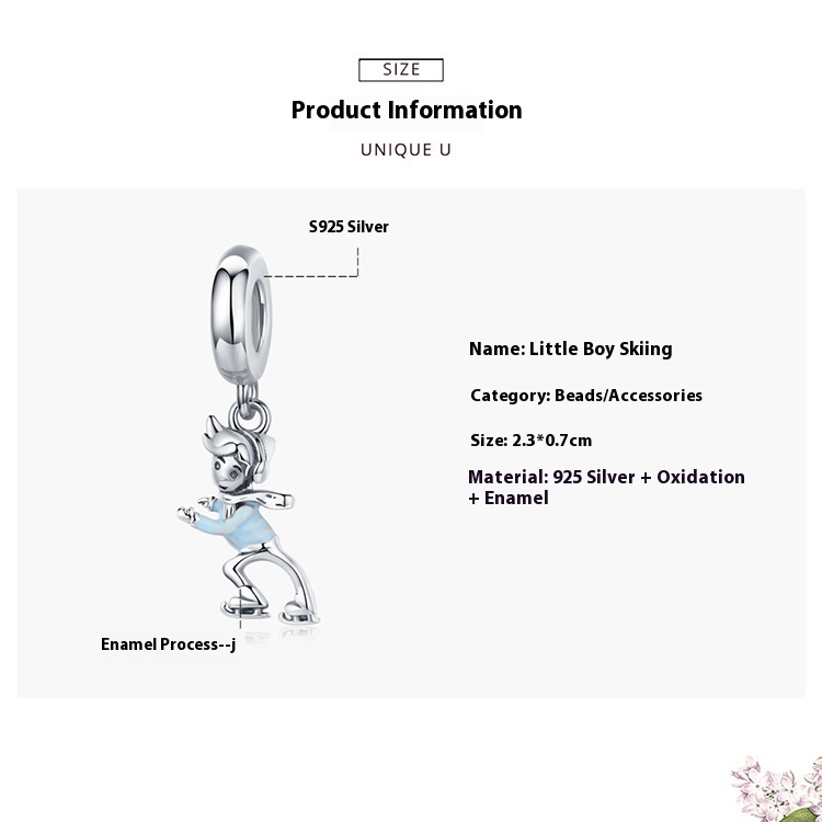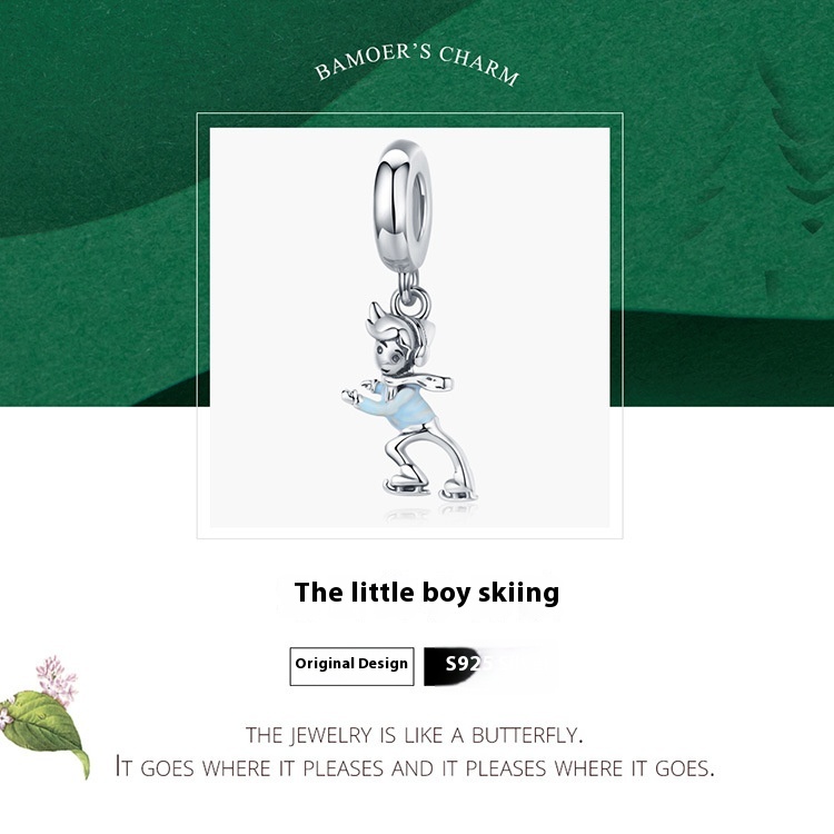 Ski Boy Girl S925 Sterling Silver Pendant DIY Ornament Accessories